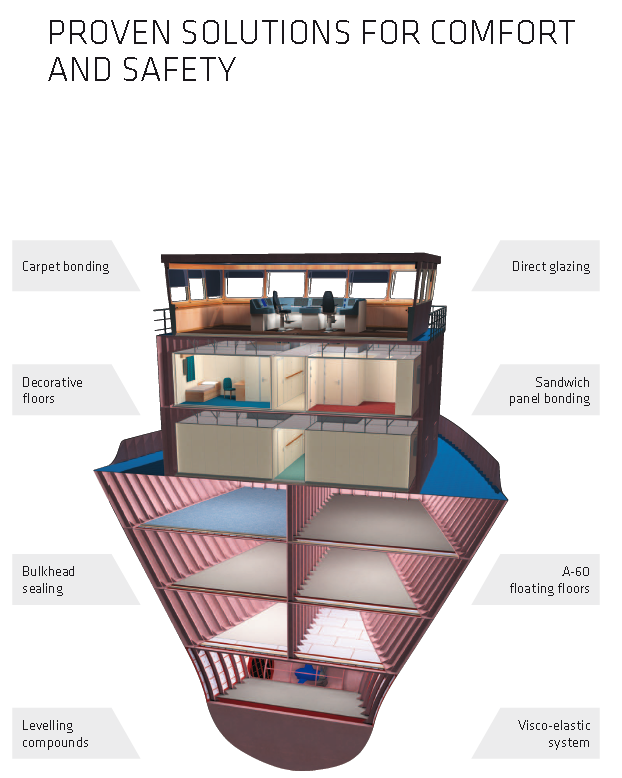 西卡作為世界領先的粘接、密封、阻尼和增強產品開發公司,是全球海事行業的供應商和合作伙伴,不僅為船舶工業提供粘接和密封系統,還為船舶工業提供一系列聲學和地板系統。西卡在所有造船國家都有自己的子公司,因此無論客戶在哪里,西卡都能確保一流的訂單處理、交付、應用開發、技術和商業支持。